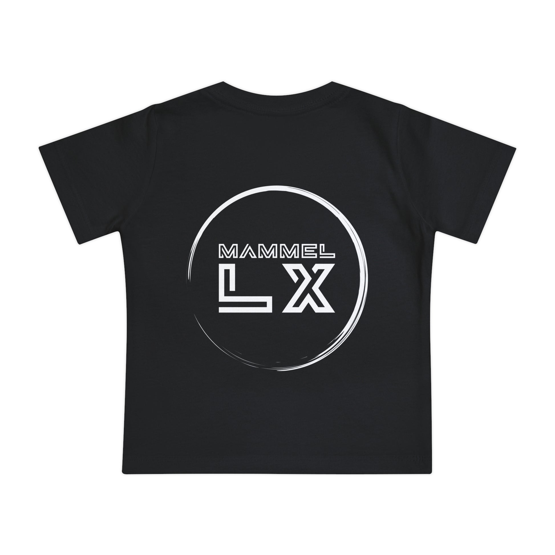 Soft, lightweight baby tee with a bold, graphic attitude. The clean black knit serves as a minimalist stage for crisp white typography and emblem-style artwork — front text stacked in playful, modern lettering and a round logo centered on the back. It feels casual and confident on little bodies: breathable cotton, gentle stitching, and a tear-away label that keeps dressing easy. This shirt settles into everyday rhythms — crawling, playdates, stroller strolls — while showing off a subtle, design-led personality.